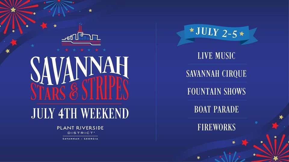 Savannah- Savannah Stars and Stripes with Plant Riverside District will have live music, cirque and fountain shows, boat parade and fireworks. Activities begin on July 2 and run through July 5. Click here to find out more.